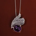 گردنبند آمیتیست زنانه طرح گل و مرغ کد 26308