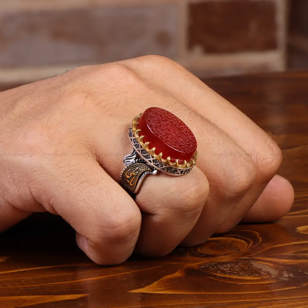 انگشتر عقیق یمن مردانه. نگین عقیق یمن گوهری ارزشمند که بر روی این رکاب قرار گرفته و زیبایی این اثر را چندین برابر میکند. جنس رکاب این انگشتر نقره با عیار 925 می باشد که به خاطر خواص و قیمت مناسب در جواهرسازی و ساخت انگشتر بسیار استفاده می شود.