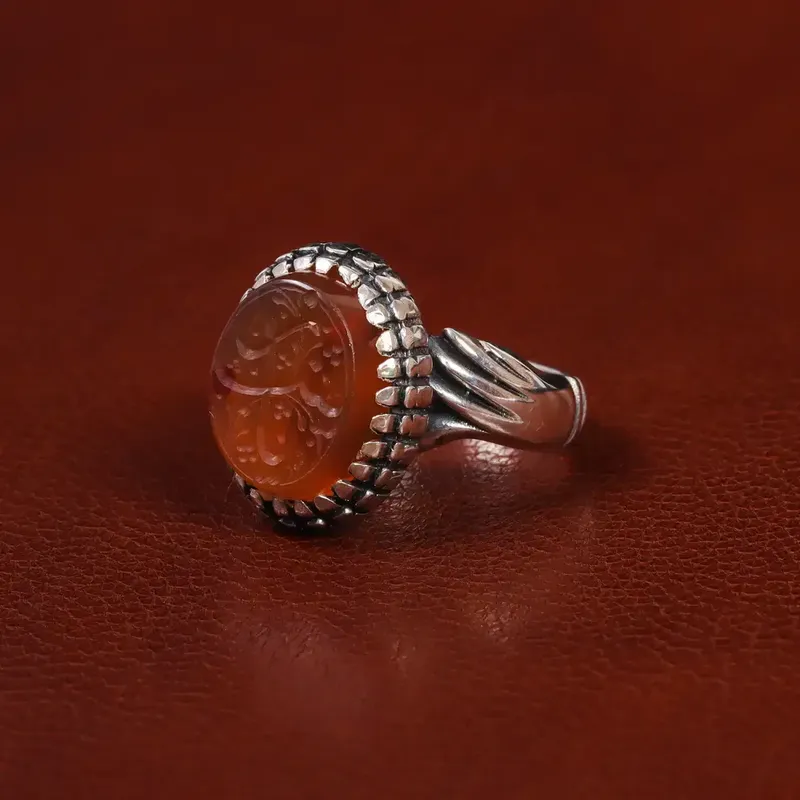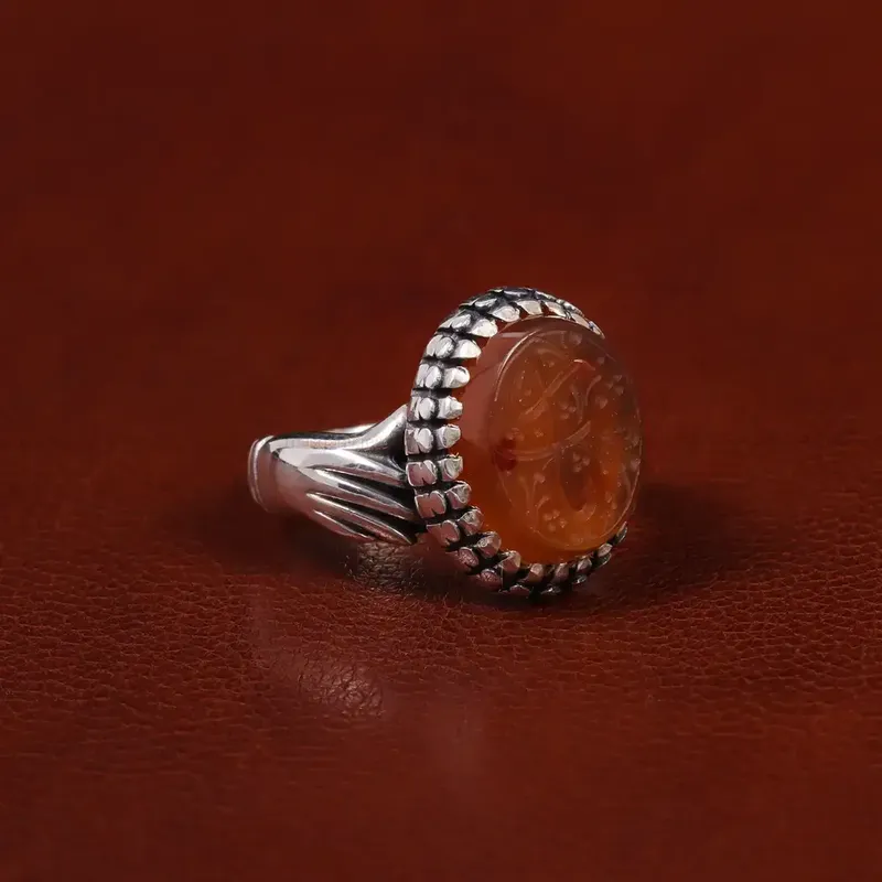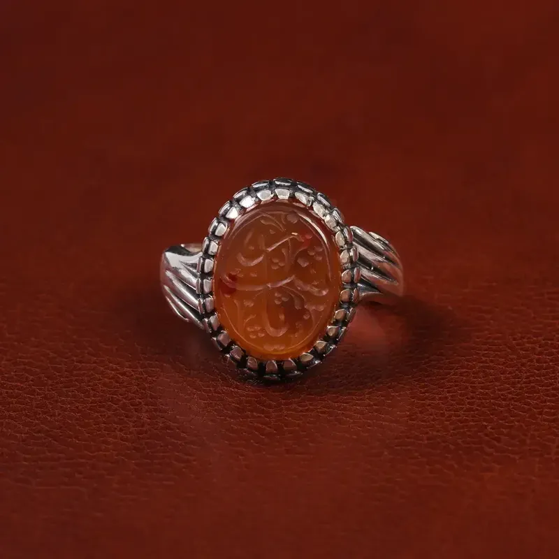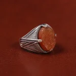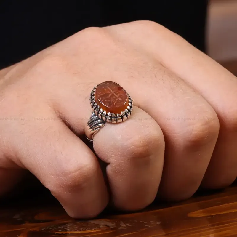 انگشتر عقیق یمن مردانه. نگین عقیق گوهری ارزشمند که بر روی این رکاب قرار گرفته و زیبایی این اثر را چندین برابر میکند. جنس رکاب این انگشتر نقره با عیار 925 می باشد که به خاطر خواص و قیمت مناسب در جواهرسازی و ساخت انگشتر بسیار استفاده می شود.