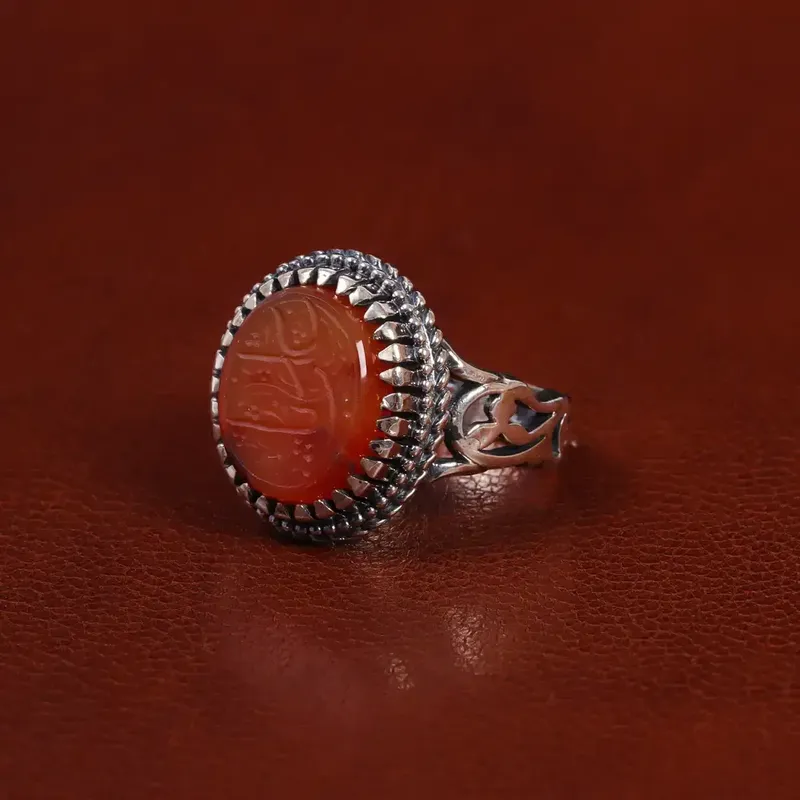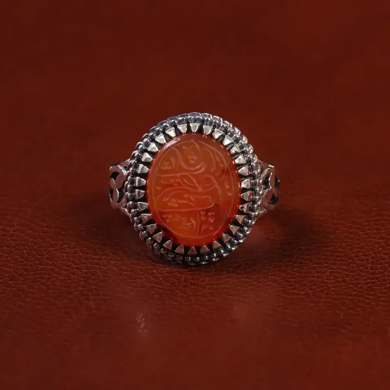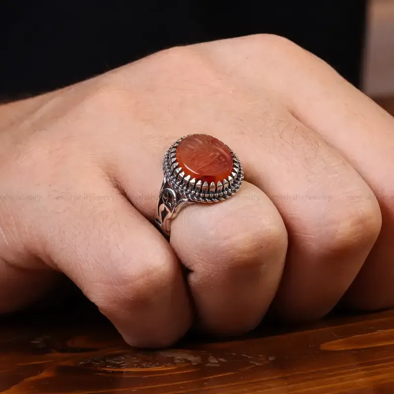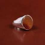 nانگشتر عقیق یمن مردانه. نگین عقیق گوهری ارزشمند که بر روی این رکاب قرار گرفته و زیبایی این اثر را چندین برابر میکند. جنس رکاب این انگشتر نقره با عیار 925 می باشد که به خاطر خواص و قیمت مناسب در جواهرسازی و ساخت انگشتر بسیار استفاده می شود.