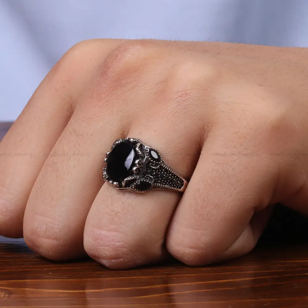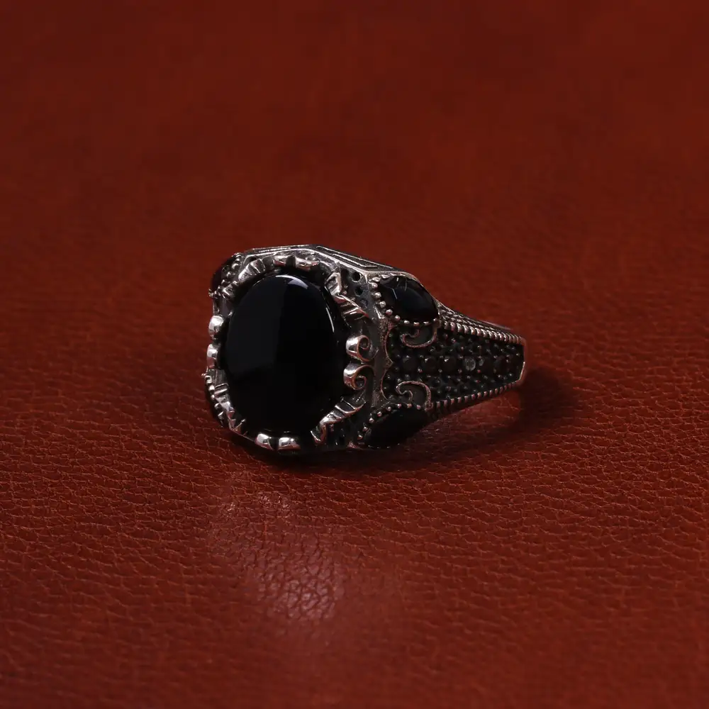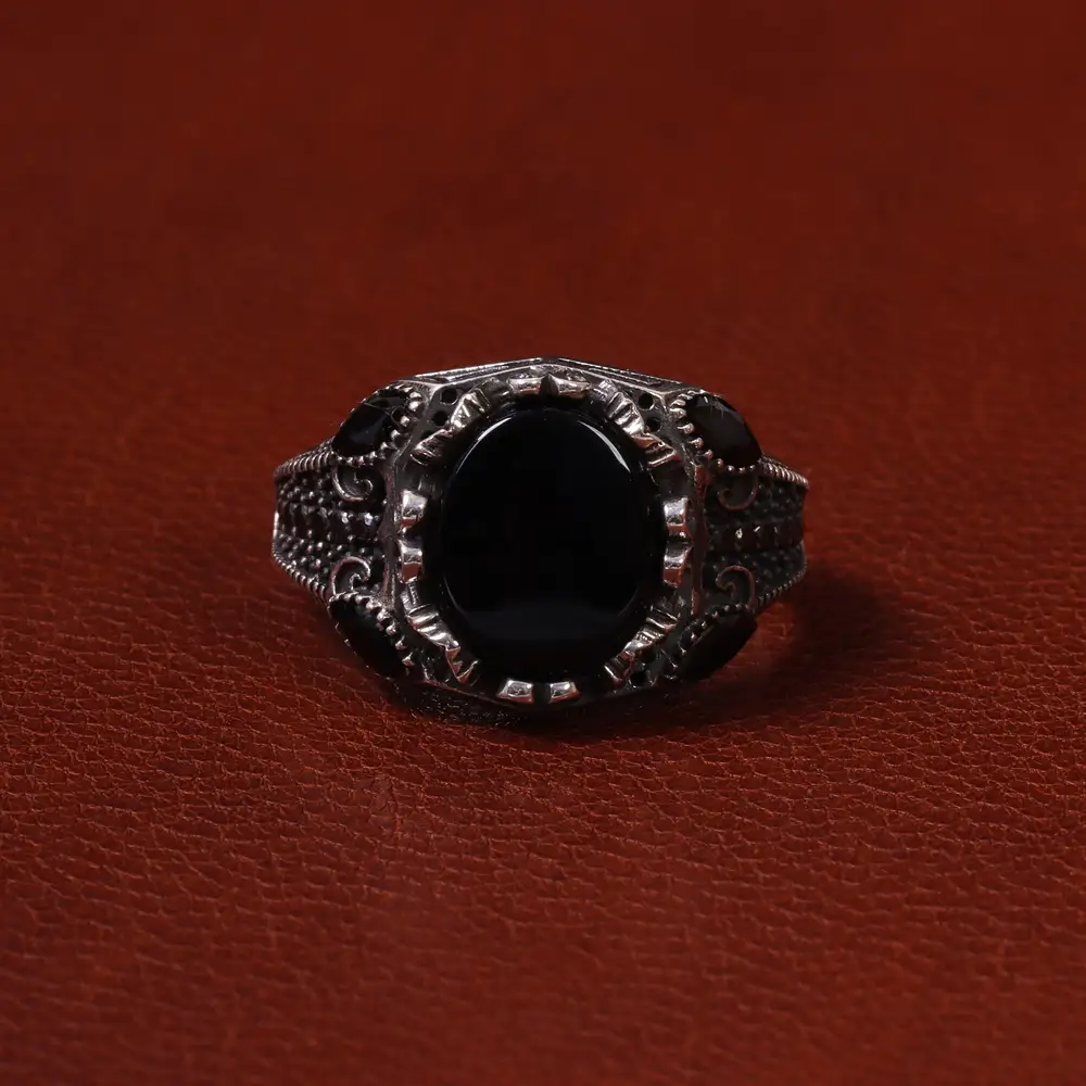 انگشتر عقیق مشکی مردانه کد 25316