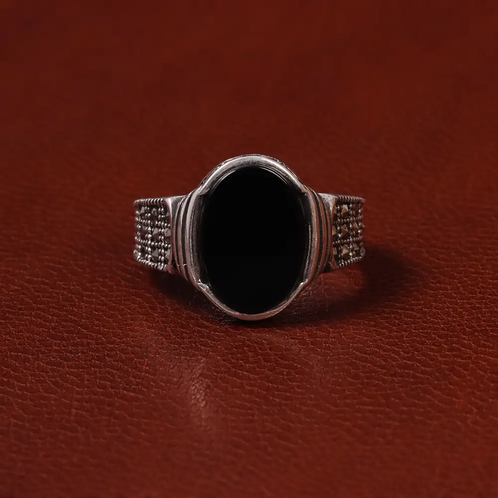 انگشتر عقیق مشکی مردانه کد 25320