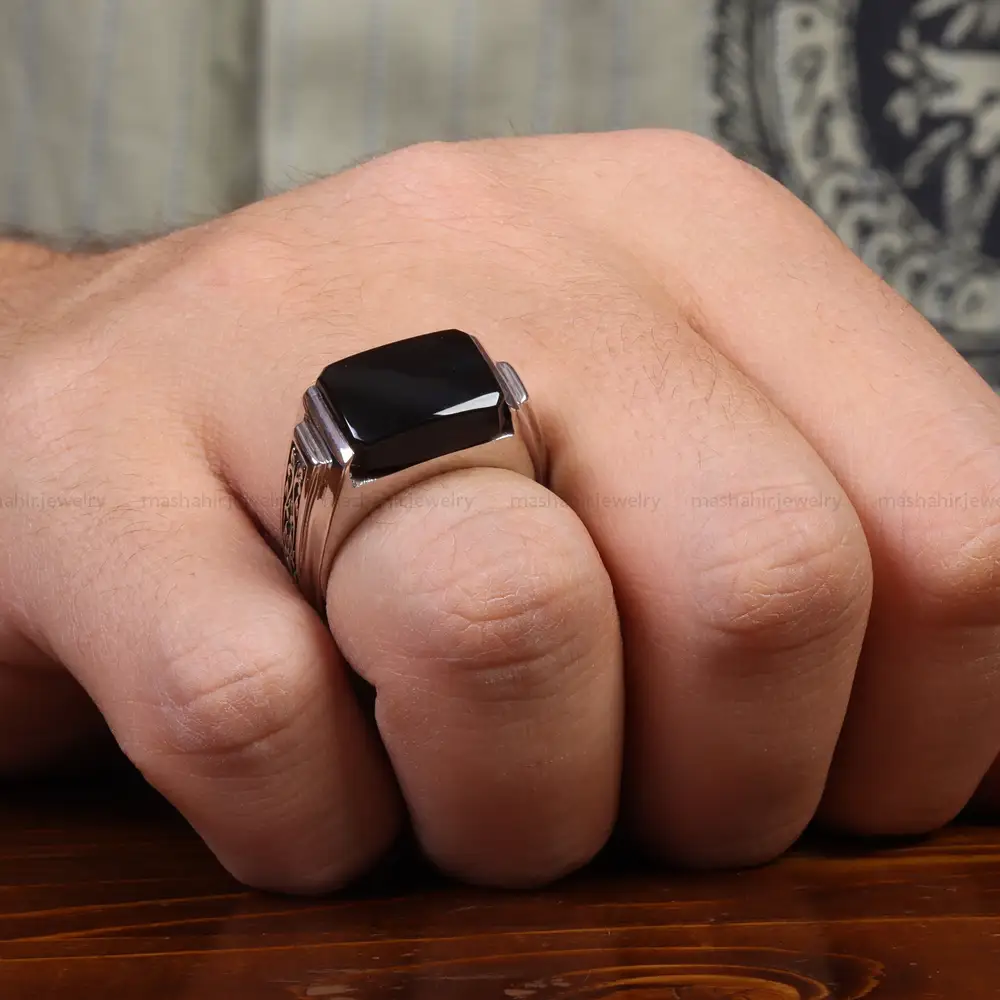 انگشتر عقیق جزع یمن مردانه کد 25496