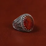 انگشتر عقیق مردانه کد 31044 مناسب آقایانی‌ست که به طراحی‌های خاص و سنگ‌های اصیل علاقه دارند. ترکیب رنگ گرم نگین، فرم خط‌دار رکاب و پرداخت دقیق، این مدل انگشتر مردانه را به گزینه‌ای مناسب برای هدیه دادن نیز تبدیل کرده است.