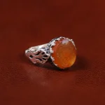 انگشتر عقیق مردانه کد 31046 مناسب آقایانی‌ است که به طراحی‌های تزئینی و سنگ‌های اصیل علاقه دارند. ترکیب رنگ گرم نگین، جزئیات برجسته رکاب و پرداخت دقیق، این مدل انگشتر مردانه را به گزینه‌ای مناسب برای هدیه دادن نیز تبدیل کرده است.