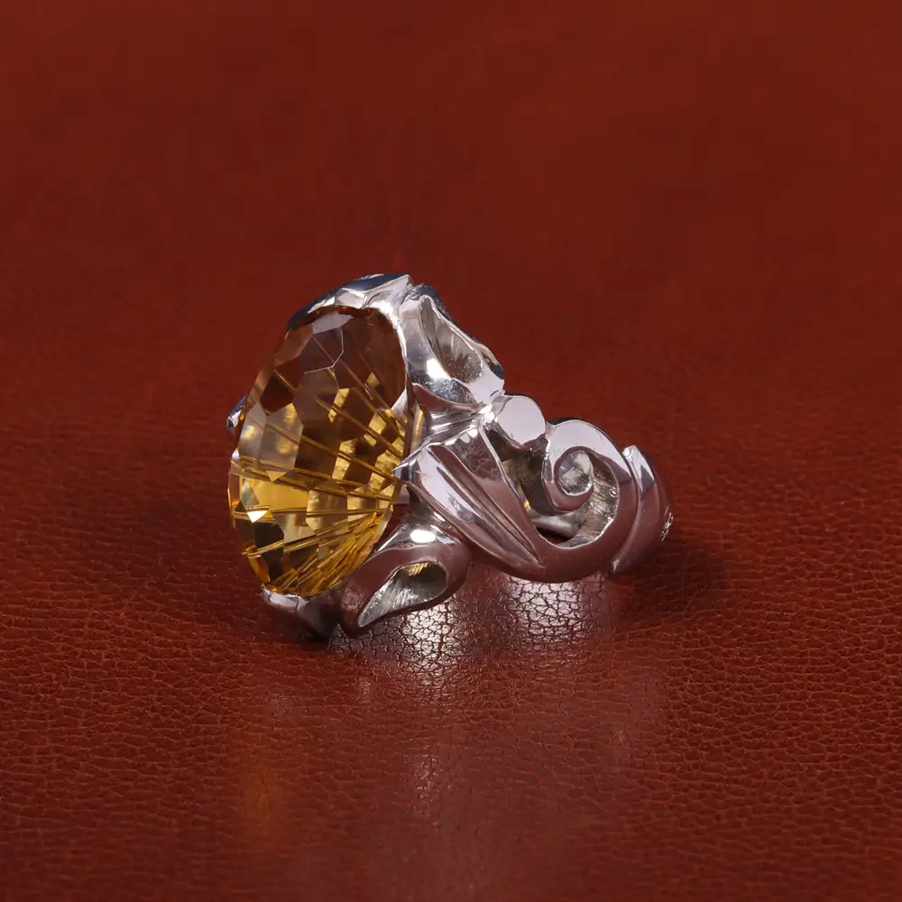 انگشتر سیترین آفریقا گوهری ارزشمند که قرار گرفتن آن بر روی رکاب این انگشتر اثری خاص و فوق العاده زیبا را به وجود آورده است. جنس رکاب این انگشتر نقره با عیار 925 و روکش رادیوم ساخته شده است که به