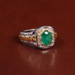 انگشتر زمرد زامبیا مردانه. جنس رکاب این انگشتر نقره با عیار 925 می باشد که به خاطر خواص و قیمت مناسب در جواهرسازی و ساخت انگشتر بسیار استفاده می شود.