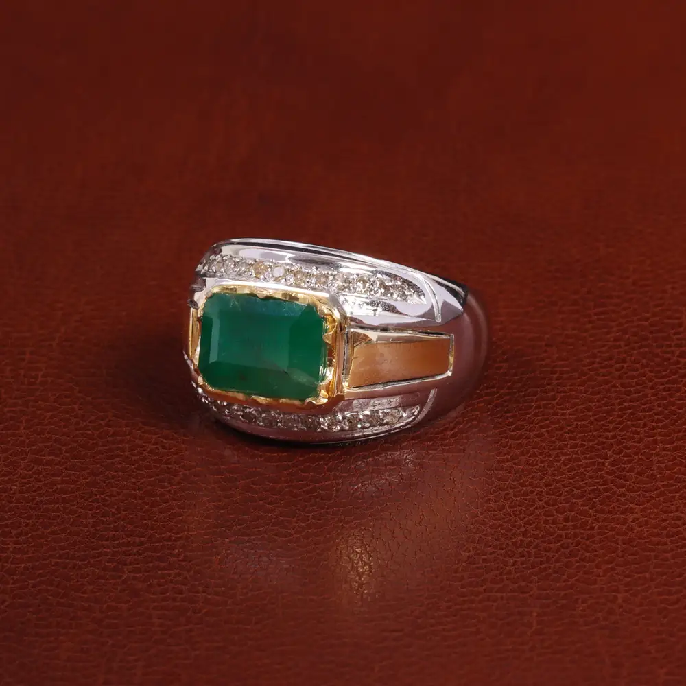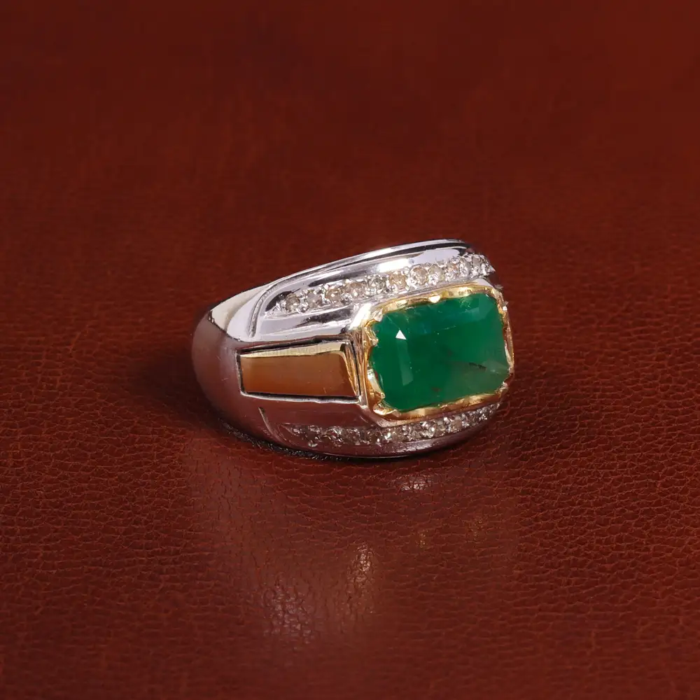 انگشتر زمرد زامبیا مردانه مخراج کاری الماس. جنس رکاب این انگشتر نقره با عیار 925 می باشد که به خاطر خواص و قیمت مناسب در جواهرسازی و ساخت انگشتر بسیار استفاده می شود. تضمین اصالت نگین، شناسنامه همراه محصول است.