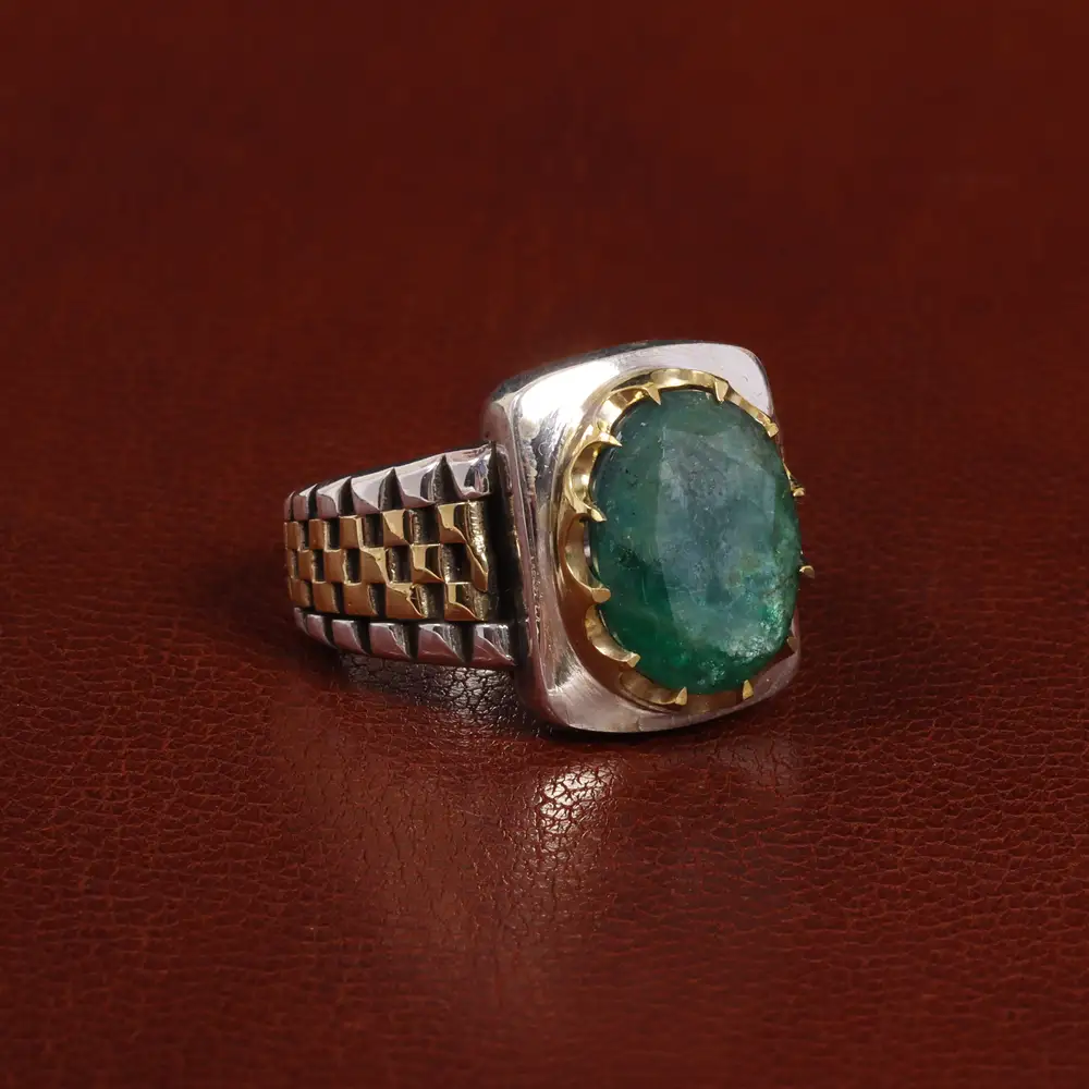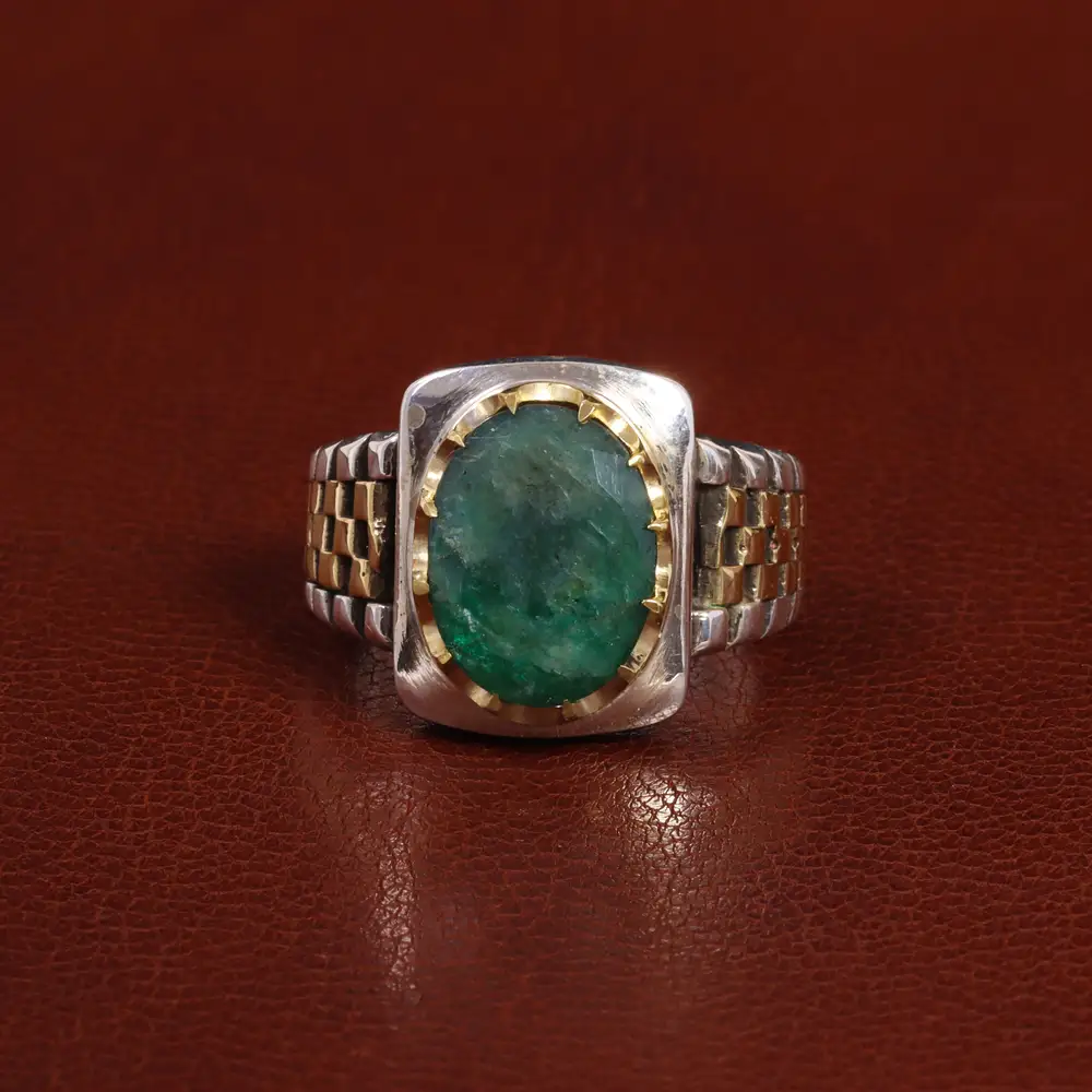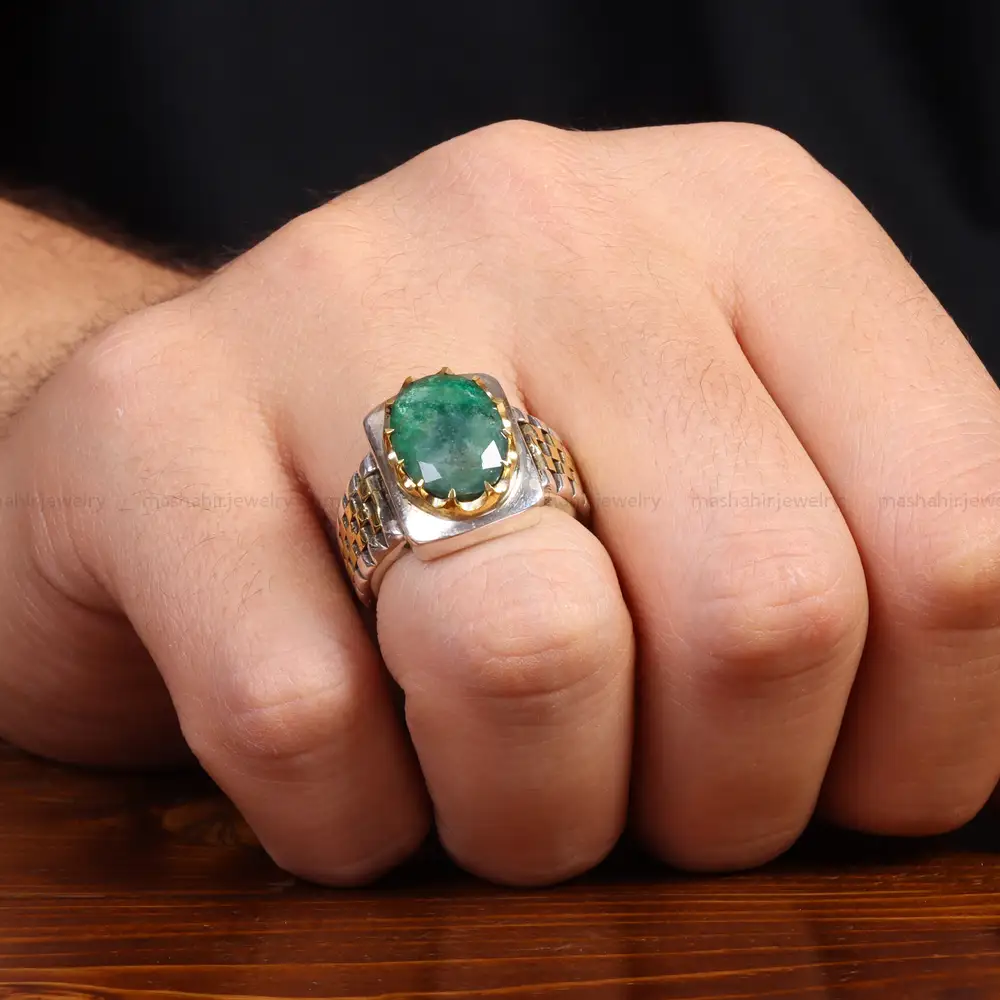انگشتر زمرد زامبیا مردانه. جنس رکاب این انگشتر نقره با عیار 925 می باشد که به خاطر خواص و قیمت مناسب در جواهرسازی و ساخت انگشتر بسیار استفاده می شود. تضمین اصالت نگین، شناسنامه همراه محصول است.