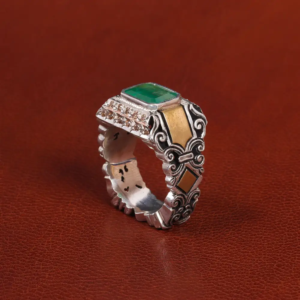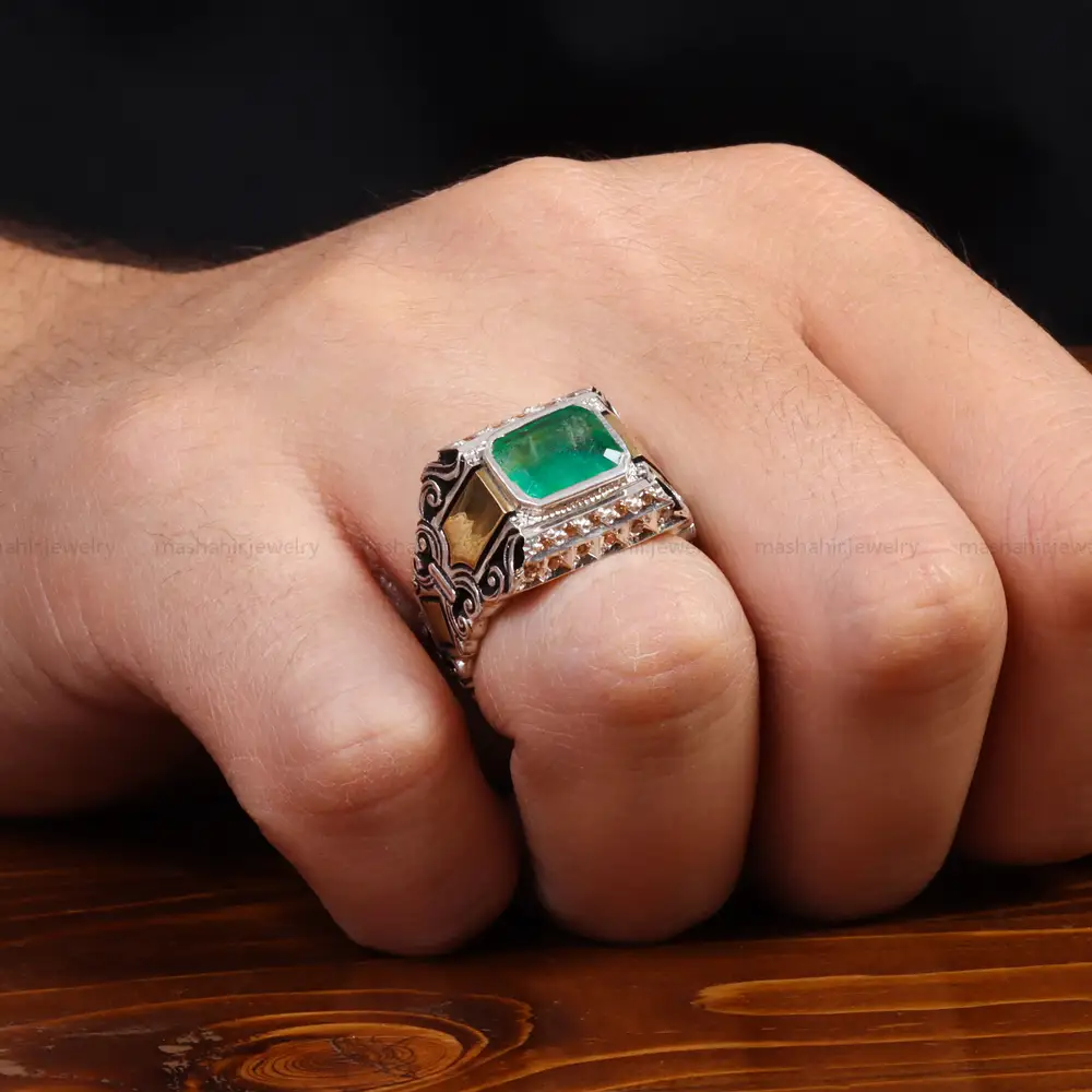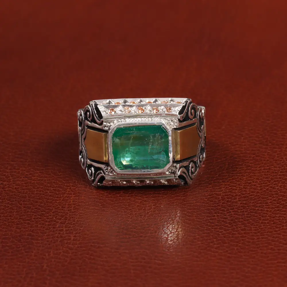انگشتر زمرد زامبیا مردانه. جنس رکاب این انگشتر نقره با عیار 925 می باشد که به خاطر خواص و قیمت مناسب در جواهرسازی و ساخت انگشتر بسیار استفاده می شود. تضمین اصالت نگین، شناسنامه همراه محصول است.