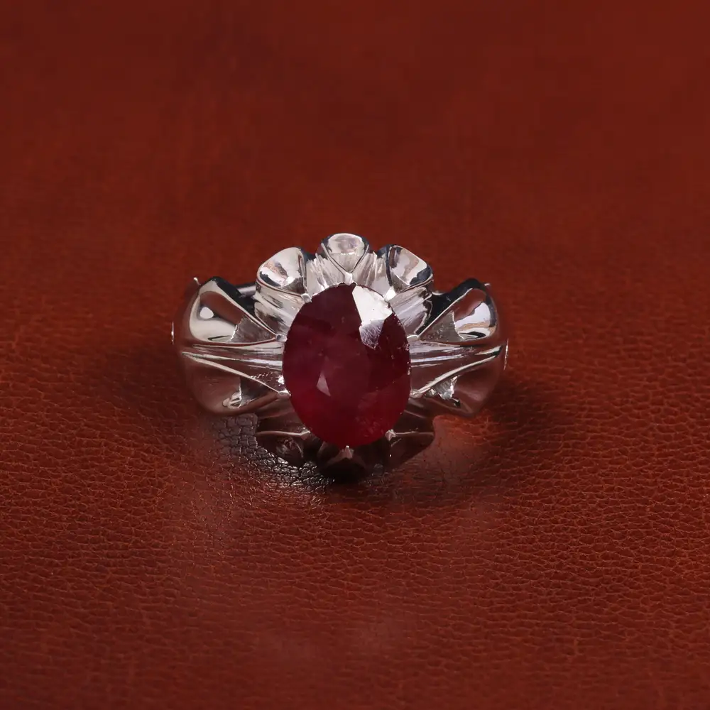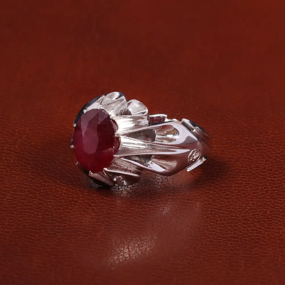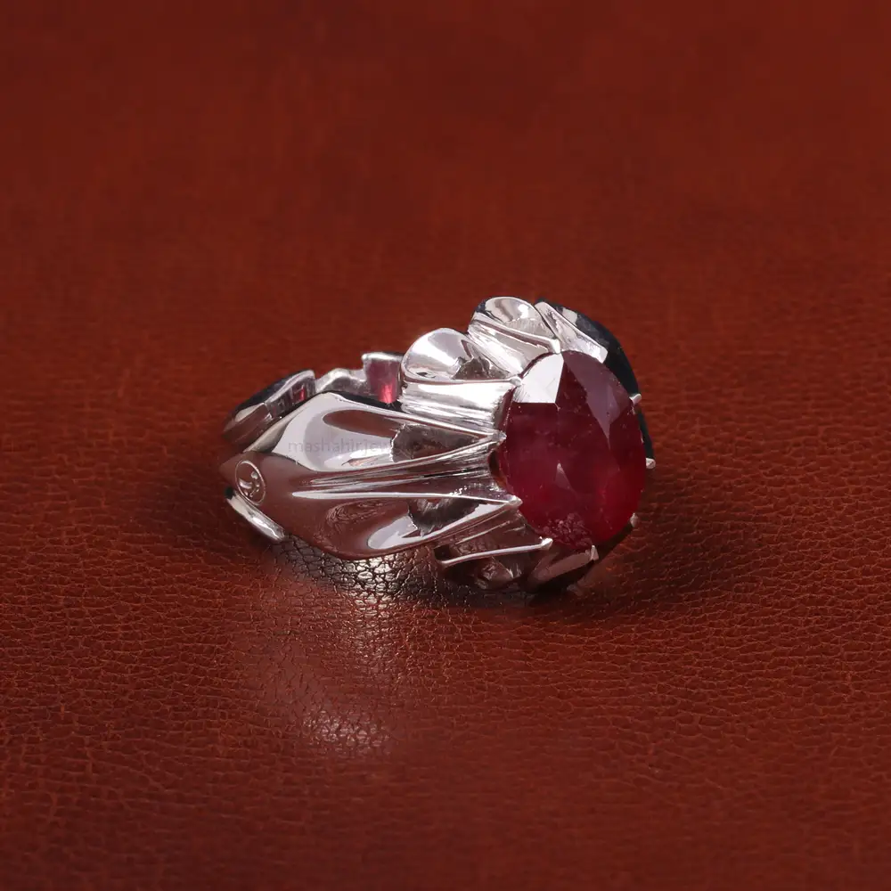 انگشتر یاقوت سرخ با رکاب دست ساز . جنس رکاب این انگشتر نقره با عیار 925 می باشد که به خاطر خواص و قیمت مناسب در جواهرسازی و ساخت انگشتر بسیار استفاده می شود.