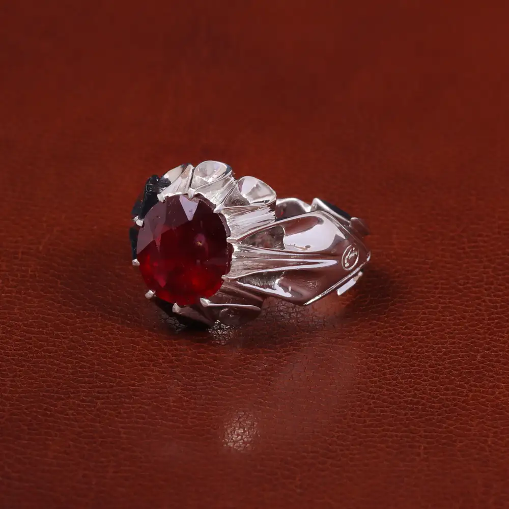 انگشتر یاقوت سرخ دانه اناری با رکاب دست ساز . جنس رکاب این انگشتر نقره با عیار 925 می باشد که به خاطر خواص و قیمت مناسب در جواهرسازی و ساخت انگشتر بسیار استفاده می شود.