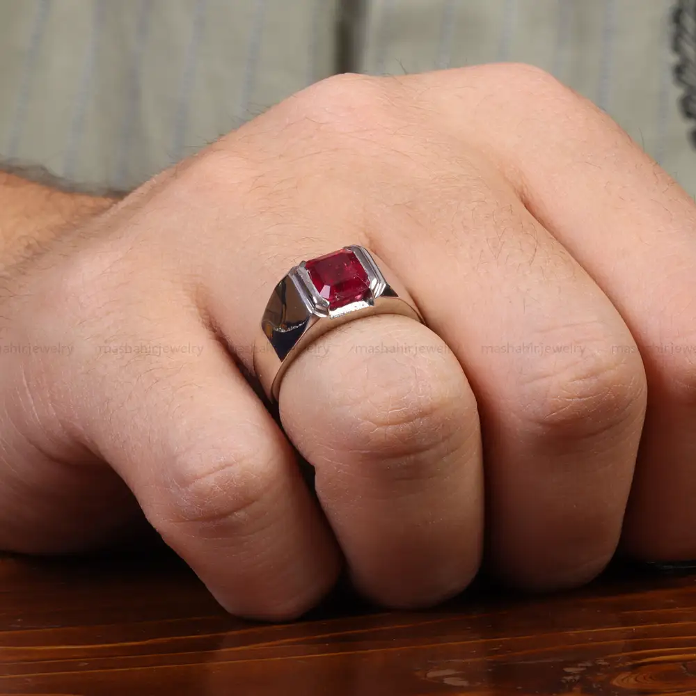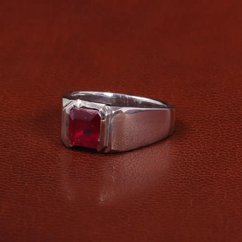 انگشتر یاقوت سرخ با رکاب دست ساز . جنس رکاب این انگشتر نقره با عیار 925 می باشد که به خاطر خواص و قیمت مناسب در جواهرسازی و ساخت انگشتر بسیار استفاده می شود.