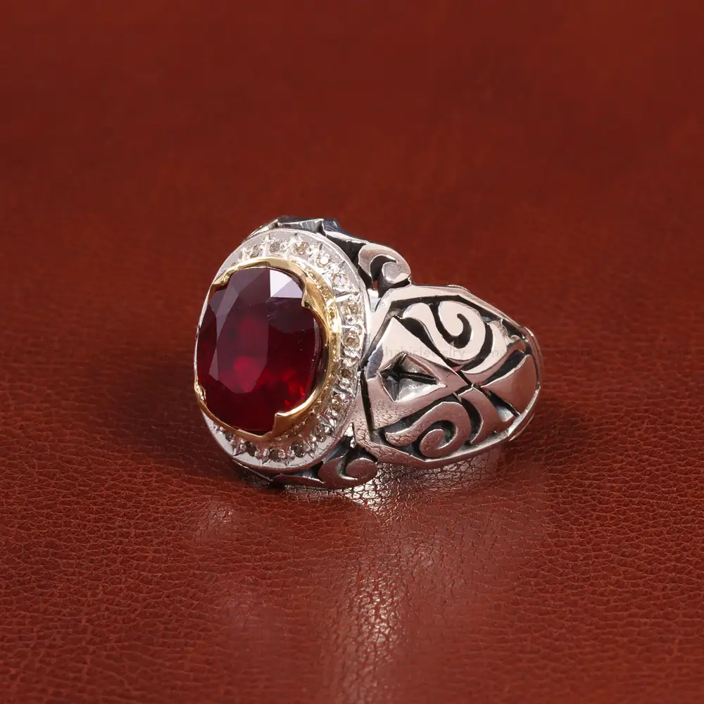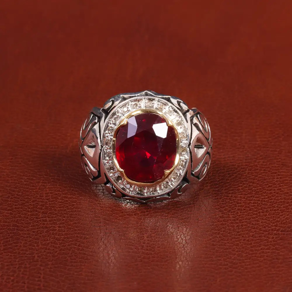 انگشتر یاقوت سرخ با رکاب دست ساز شبکه به همراه مخراج کاری الماس درجه یک. جنس رکاب این انگشتر نقره با عیار 925 می باشد که به خاطر خواص و قیمت مناسب در جواهرسازی و ساخت انگشتر بسیار استفاده می شود.