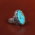 انگشتر فیروزه شجری  نیشابوری.که گوهری ارزشمند که بر روی رکاب این انگشتر قرار گرفته و زیبایی این اثر را چندین برابر میکند. جنس رکاب این انگشتر نقره با عیار 925 می باشد که به خاطر خواص و قیمت مناسب در جواهرسازی و ساخت انگشتر بسیار استفاده می شود.