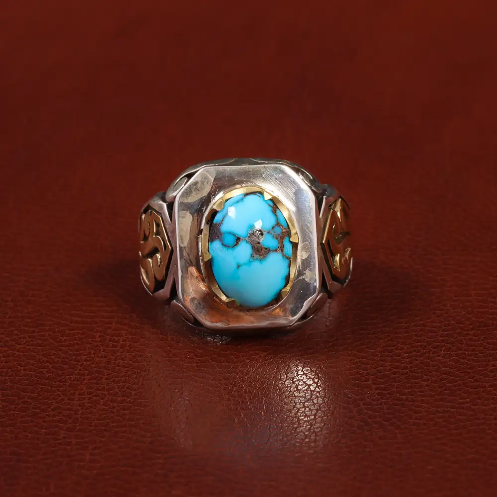 انگشتر فیروزه شجری اسپرت سوپر لوکس گوهری ارزشمند که بر روی رکاب این انگشتر قرار گرفته و زیبایی این اثر را چندین برابر میکند. جنس رکاب این انگشتر نقره با عیار 925 ساخته شده است که به خاطر خواص و قیمت مناسب در جواهرسازی و ساخت انگشتر بسیار استفاده می شود.