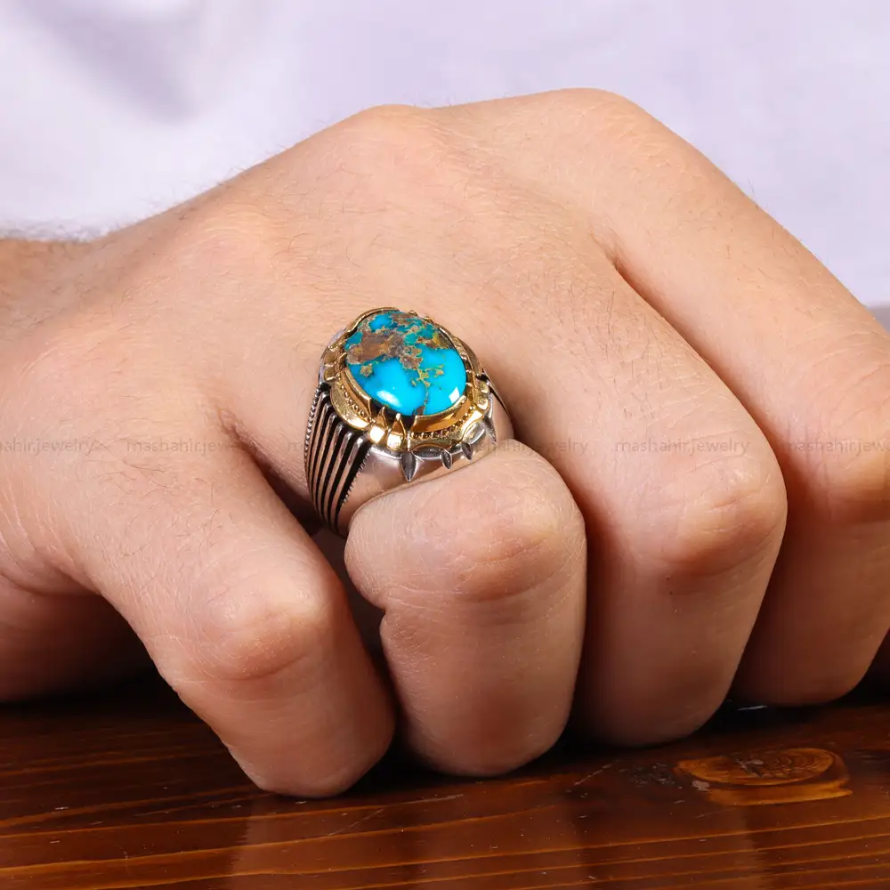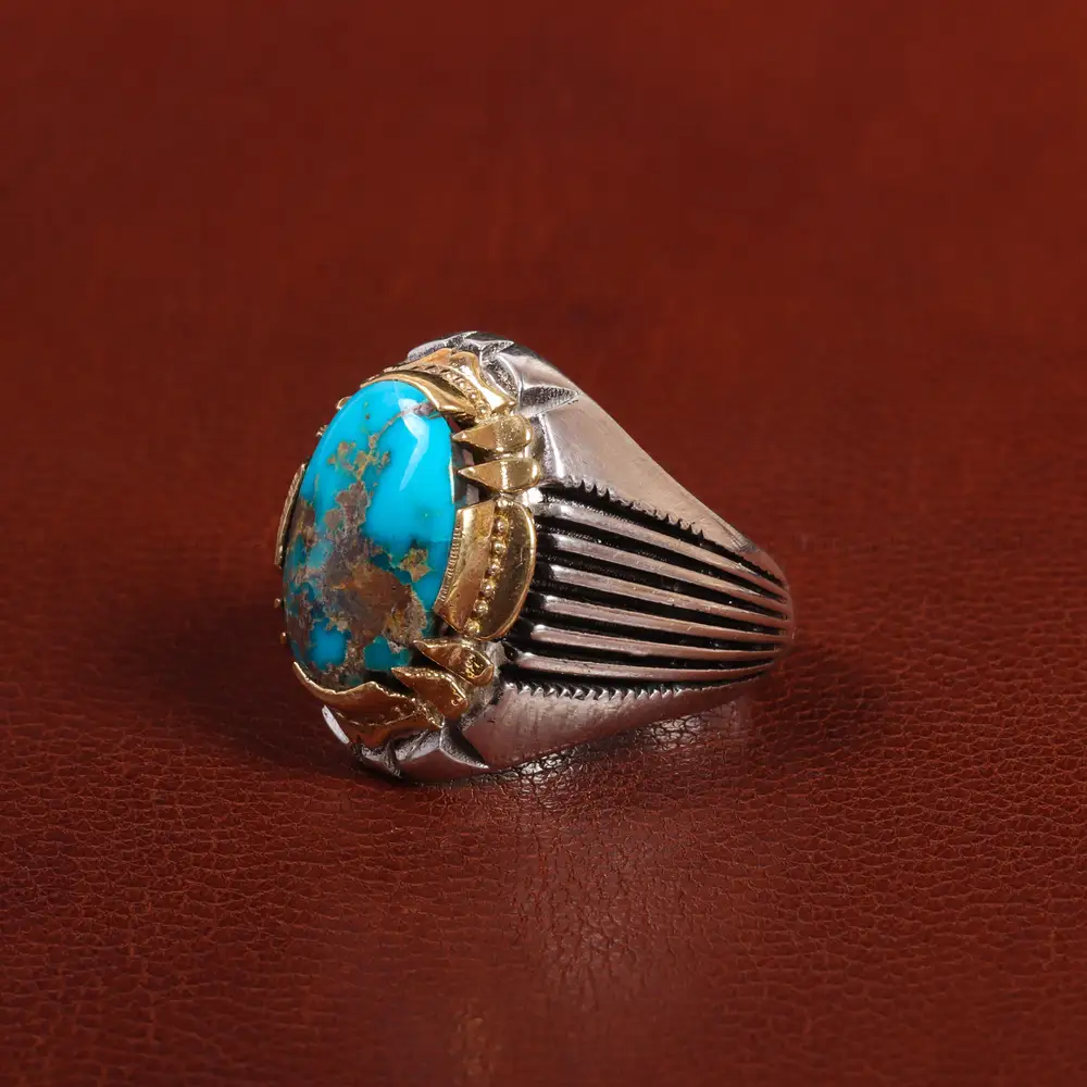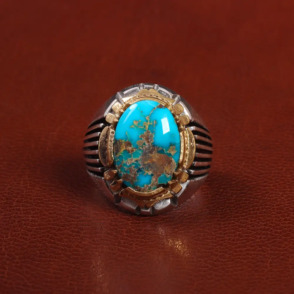 انگشتر فیروزه شجری گوهری ارزشمند که بر روی رکاب این انگشتر قرار گرفته و زیبایی این اثر را چندین برابر میکند. جنس رکاب این انگشتر نقره با عیار 925 ساخته شده است که به خاطر خواص و قیمت مناسب در جواهرسازی و ساخت انگشتر بسیار استفاده می شود.