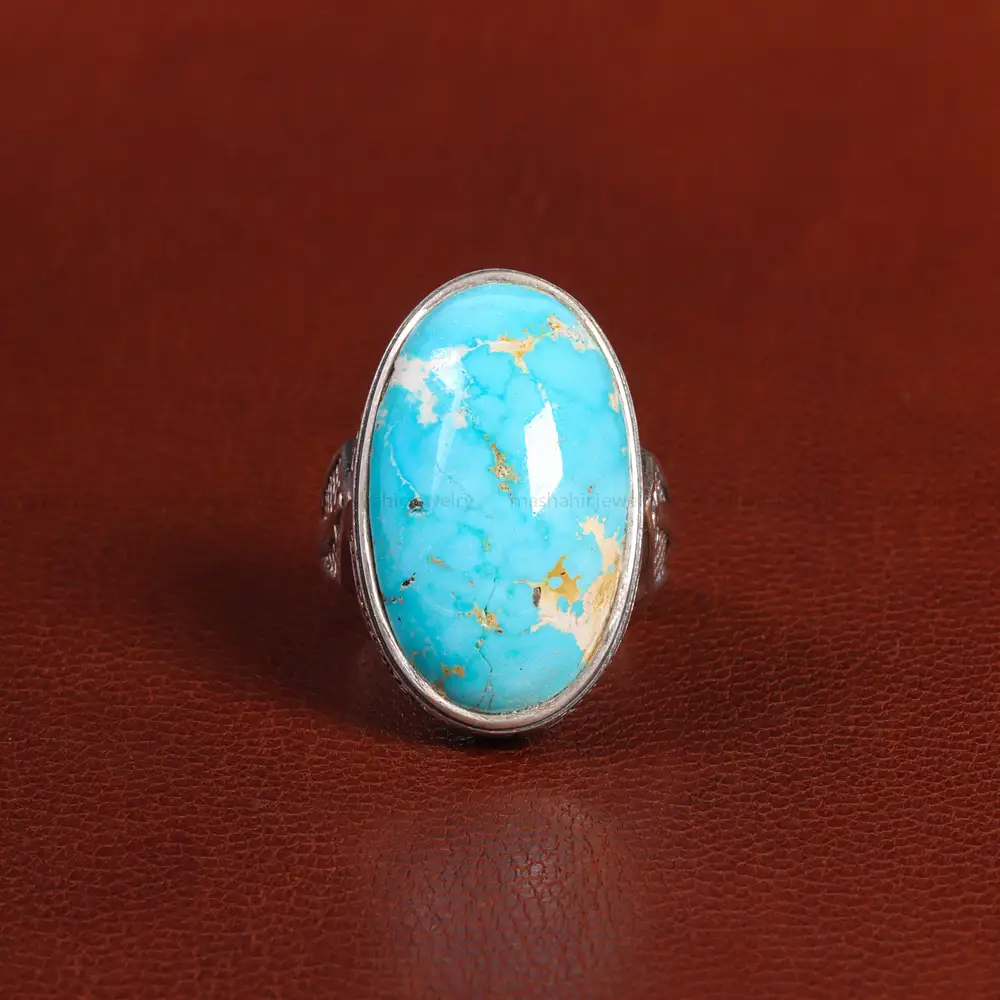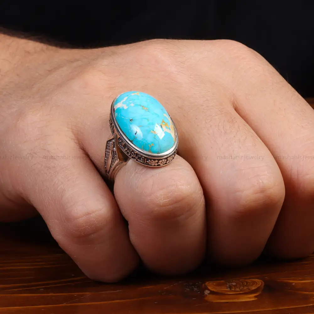 انگشتر فیروزه شجری ارزشمند که بر روی رکاب این انگشتر قرار گرفته و زیبایی این اثر را چندین برابر میکند. جنس رکاب این انگشتر نقره با عیار 925 ساخته شده است که به خاطر خواص و قیمت مناسب در جواهرسازی و ساخت انگشتر بسیار استفاده می شود.