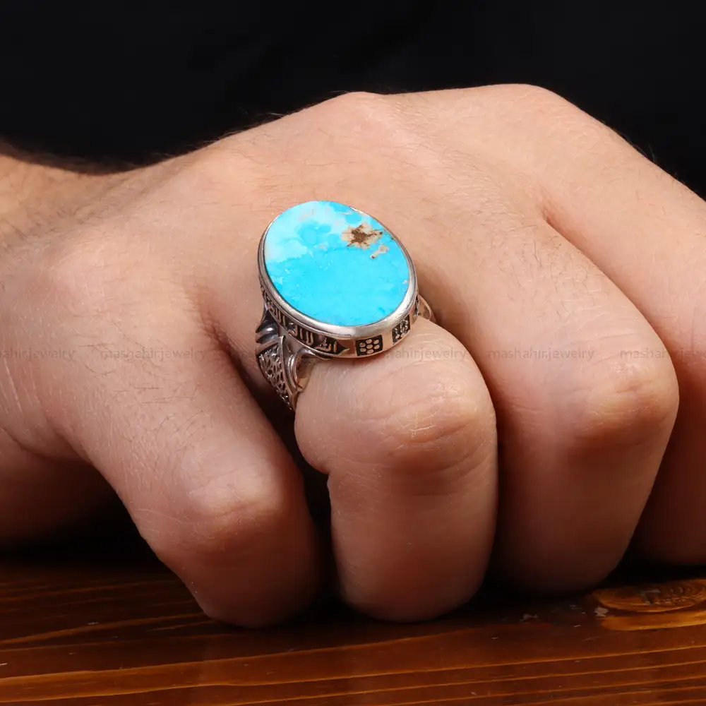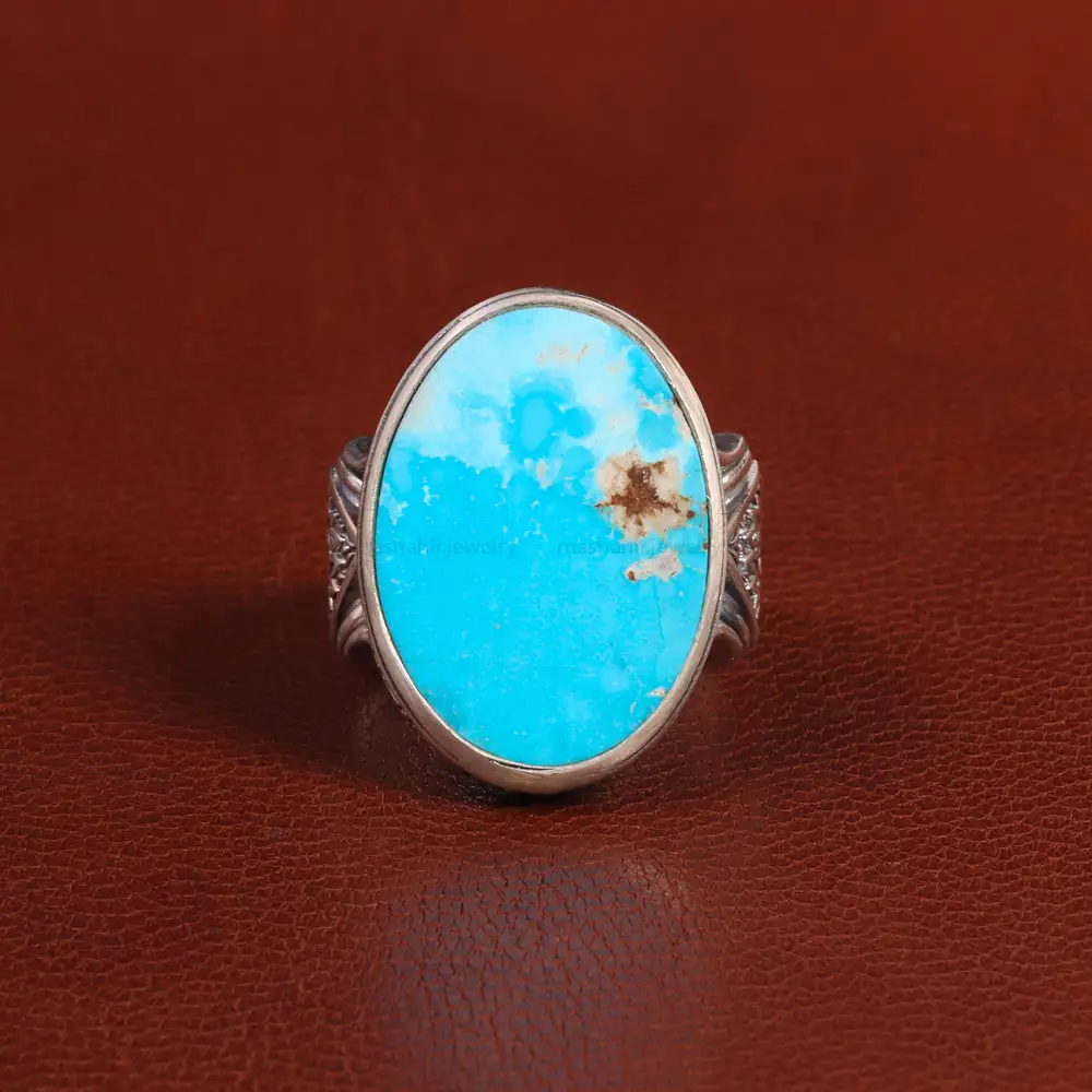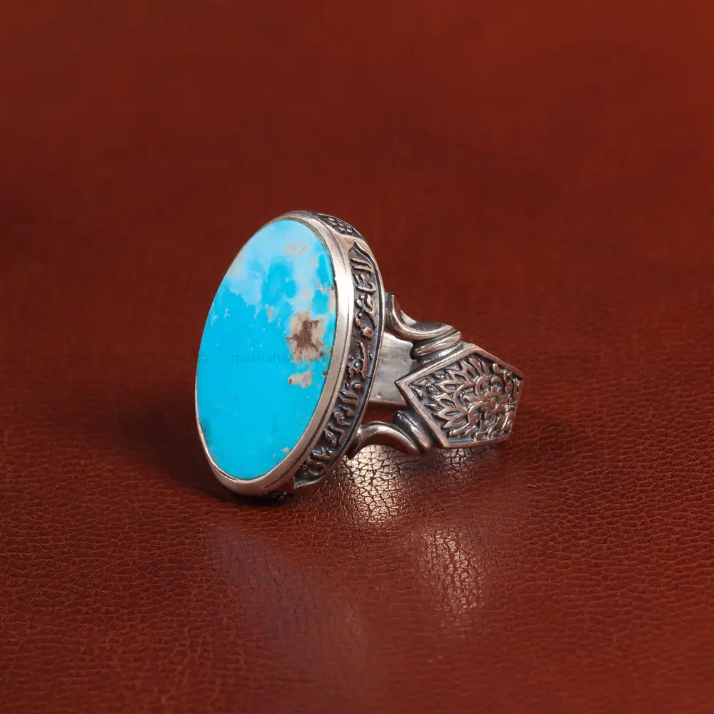 انگشتر فیروزه شجری ارزشمند که بر روی رکاب این انگشتر قرار گرفته و زیبایی این اثر را چندین برابر میکند. جنس رکاب این انگشتر نقره با عیار 925 ساخته شده است که به خاطر خواص و قیمت مناسب در جواهرسازی و ساخت انگشتر بسیار استفاده می شود.