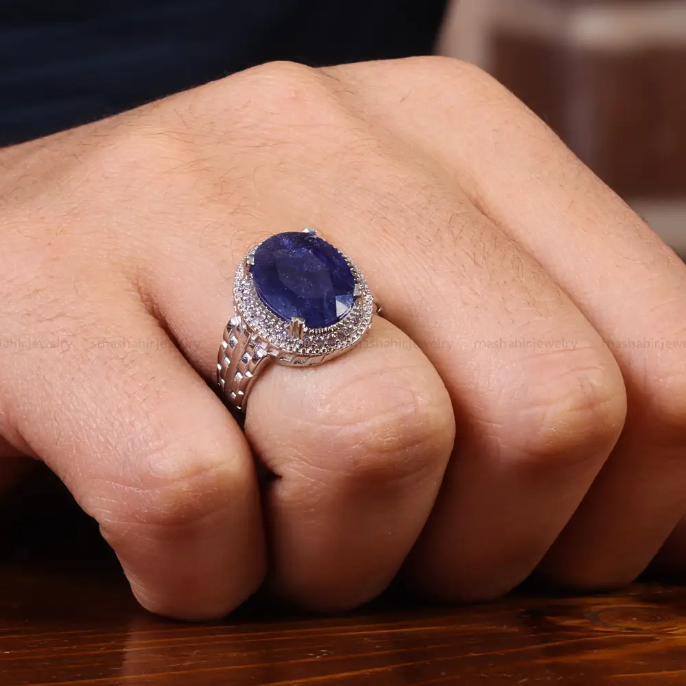 انگشتر یاقوت کبود مردانه. نگین یاقوت کبود آفریقایی گوهری ارزشمند که بر روی رکاب قرار گرفته و زیبایی این اثر را چندین برابر میکند. جنس رکاب این انگشتر نقره با عیار 925 می باشد که به خاطر خواص و قیمت مناسب در جواهرسازی و ساخت انگشتر بسیار استفاده می شود. تضمین…