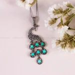 گردنبند فیروزه زنانه با دقتی بی نظیر و هنرمندانه ساخته شده است. در این جواهر بی نظیر از سنگ فیروزه شجری اصل نیشابور استفاده شده که زیبایی آن را دو چندان کرده است. جنس فلز این گردنبند نقره با عیار 925می باشد که به خاطر خواص و قیمت مناسب در جواهرسازی بسیار استفاده می شود.
