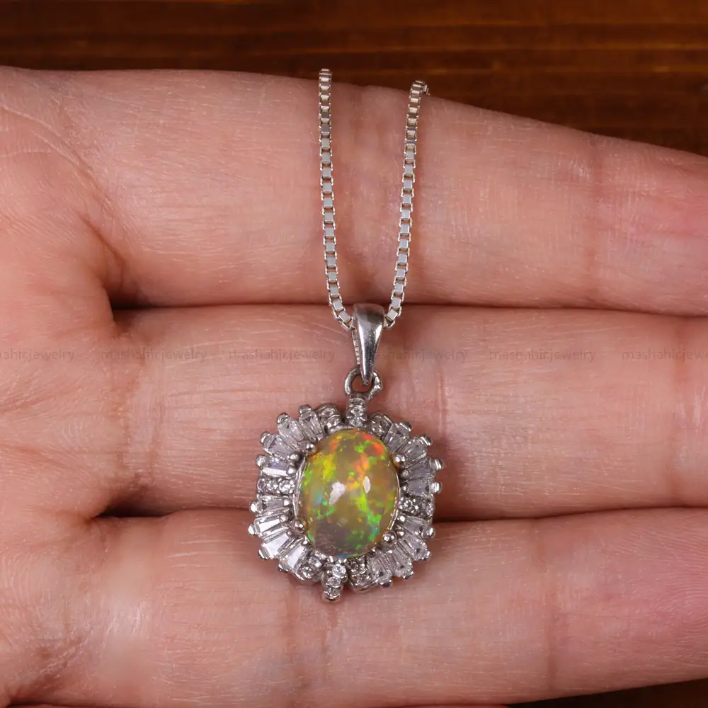 گردنبند اوپال با دقتی بی نظیر و هنرمندانه ساخته شده است. نگین این گردنبند بی نظیر سنگ اوپال اتیوپی است که علاوه بر خواص بسیار زیادی که دارد باعث زیبایی این اثر می شود. جنس فلز این گردنبند نقره با عیار 925 ساخته شده است. که در جواهرسازی بسیار استفاده می شود و یکی از فلزات محبوب در این صنعت می باشد.