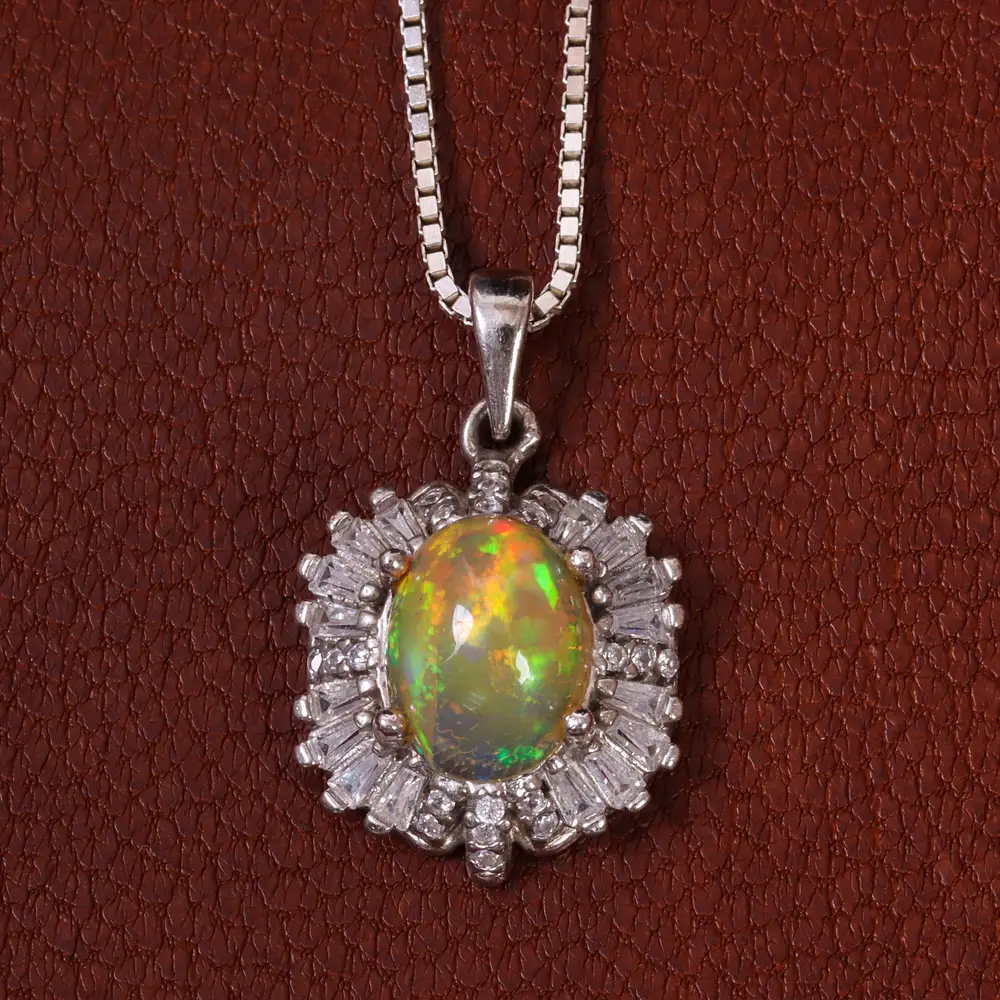 گردنبند اوپال با دقتی بی نظیر و هنرمندانه ساخته شده است. نگین این گردنبند بی نظیر سنگ اوپال اتیوپی است که علاوه بر خواص بسیار زیادی که دارد باعث زیبایی این اثر می شود. جنس فلز این گردنبند نقره با عیار 925 ساخته شده است. که در جواهرسازی بسیار استفاده می شود و یکی از فلزات محبوب در این صنعت می باشد.