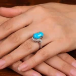 این انگشتر زنانه با طراحی ظریف و چشم نواز، جلوه ای از زیبایی اصیل شرقی را به نمایش می گذارد. در دل آن، سنگ فیروزه نیشابور با نقش های طبیعی شجری می درخشد; سنگی کمیاب و ارزشمند که از دیرباز نماد آرامش و خوش یمنی بوده است. روکش رادیوم، علاوه بر درخشندگی خیره کننده، محافظتی قدرتمند در برابر تیرگی و خوردگی ایجاد می کند. رکاب نقره 925 نیز با استحکام بالا، این ترکیب هنرمندانه را کامل می کند.