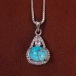 گردنبند فیروزه زنانه دورو تراش قلب ، این محصول با دقتی بی نظیر و هنرمندانه ساخته شده است. در این جواهر بی نظیر از سنگ فیروزه شجری اصل نیشابور استفاده شده که زیبایی آن را دو چندان کرده است. جنس فلز این گردنبند نقره با عیار 925 می باشد که به خاطر خواص و قیمت مناسب در جواهرسازی بسیار استفاده می شود.
