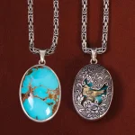 گردنبند فیروزه زنانه جلوهای از ظرافت و اصالت ایرانی را به نمایش میگذارد. این مدل گردنبند زنانه از استیل ساخته شده و نگین اصلی آن فیروزه شجر نیشابوری است. انتخابی شایسته برای بانوانی است که به دنبال ترکیبی از زیبایی، ظرافت و جلوهای منحصربهفرد در زیورآلات خود هستند.